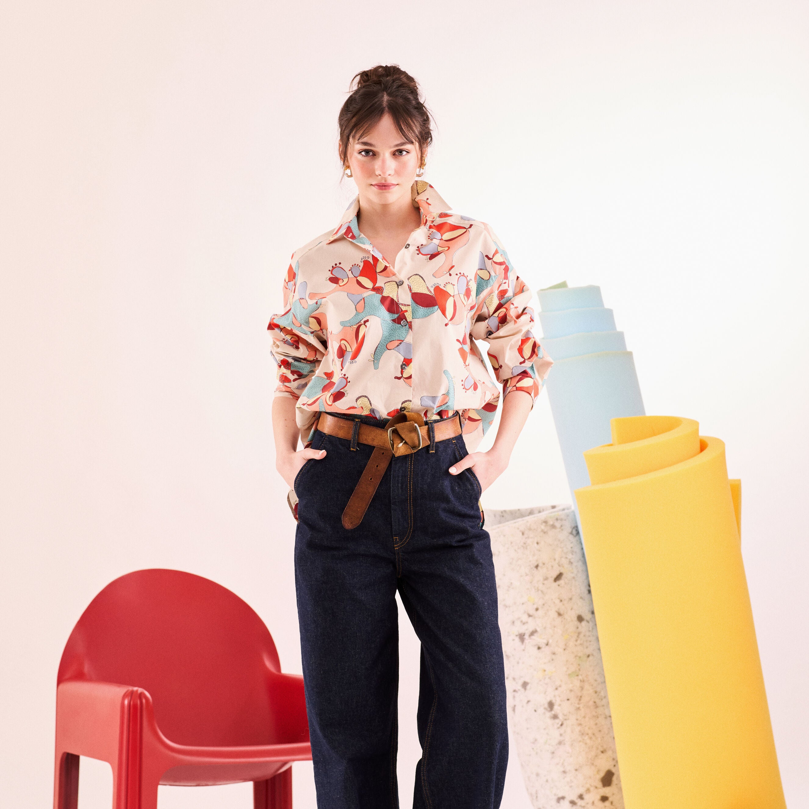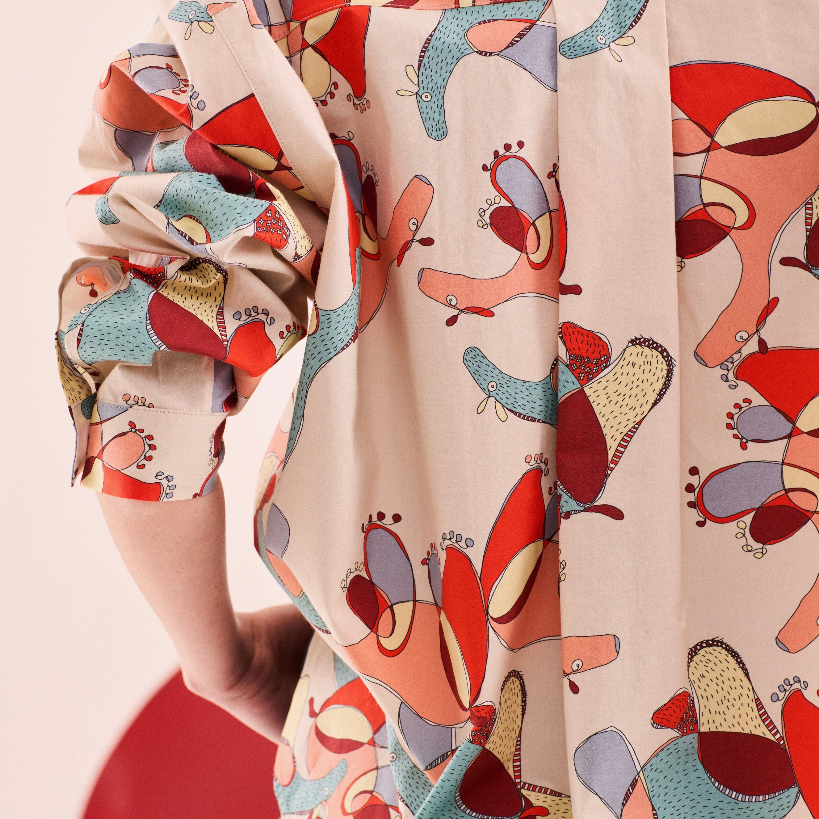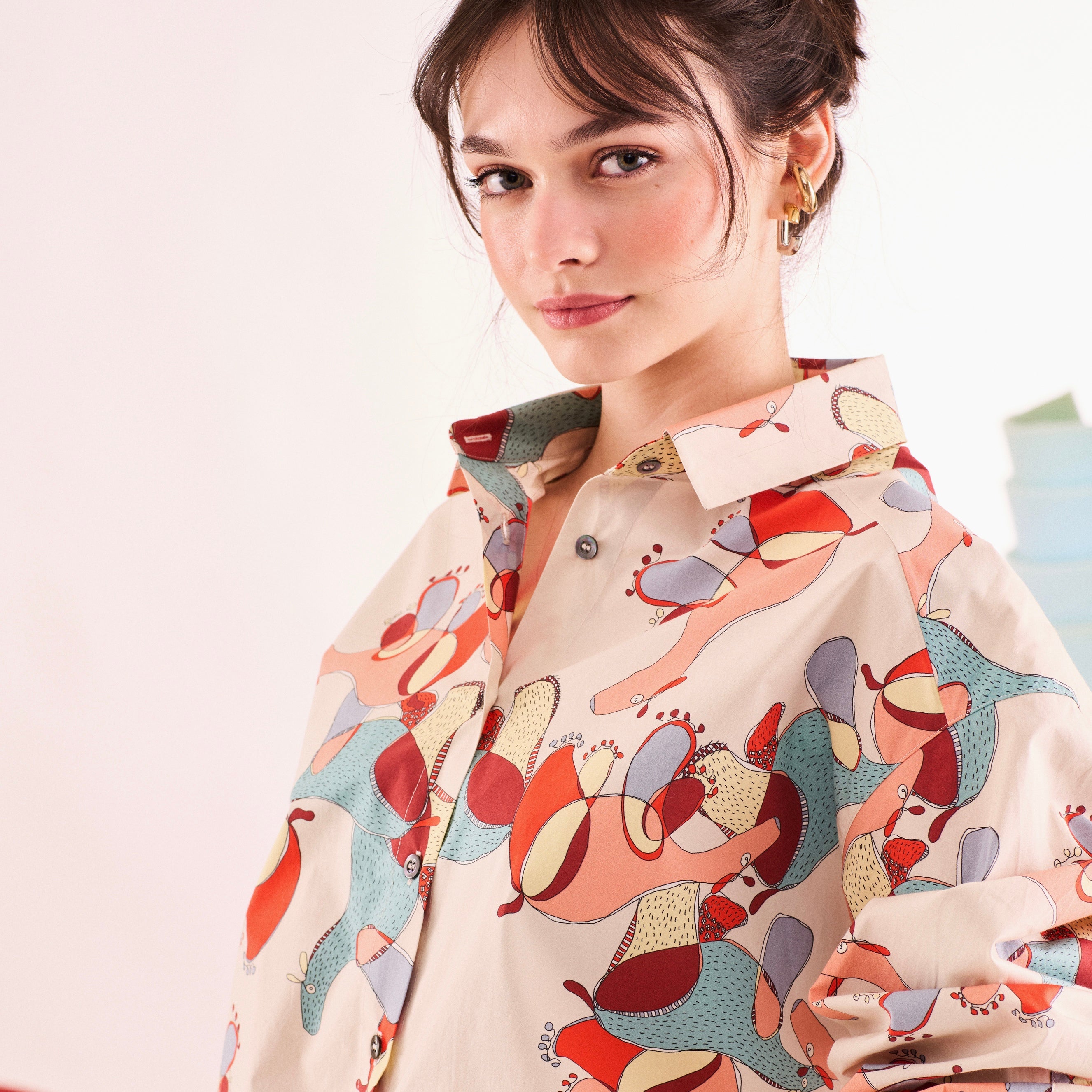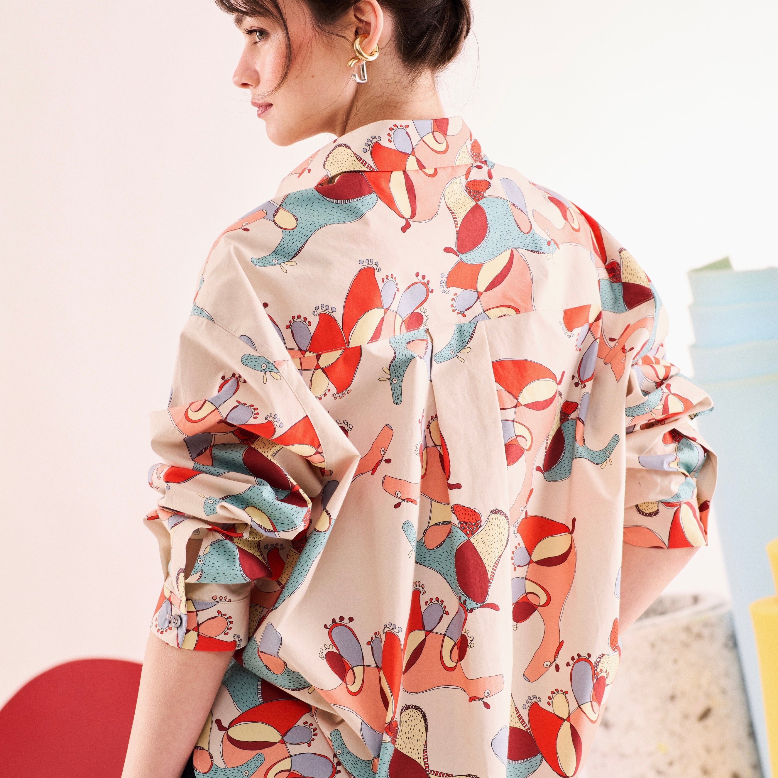 - %100 koton kumaştan, arka ortadan pile detaylı, geniş “boyfriend’s” volümlü, klasik yakalı gömlek.