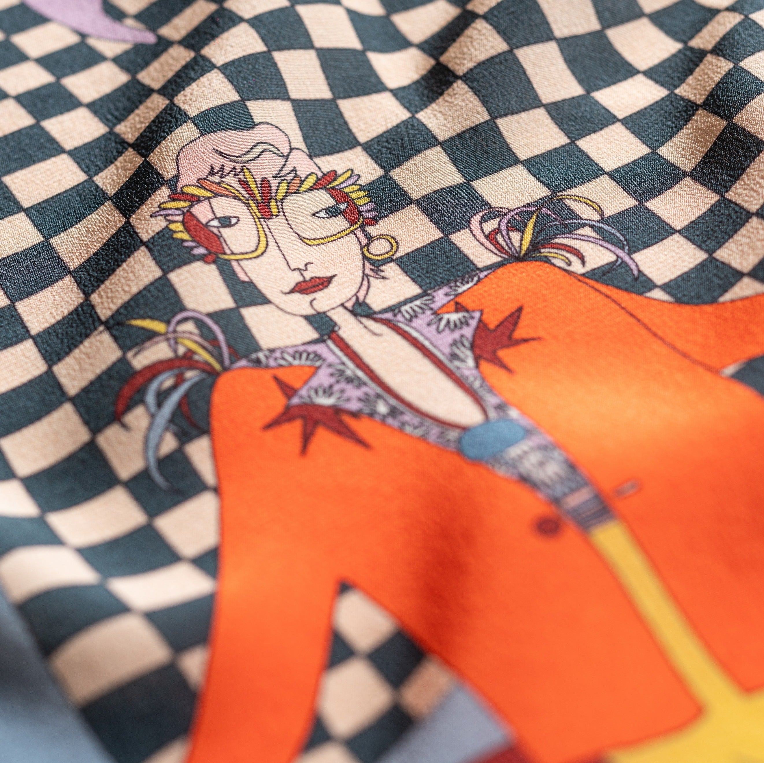 - Fularlarımız kenarlarında desende anlatılan hikayeyi tamamlayan 3 boyutlu el yapımı figürlerle gelmektedir. Geleneksel Türk Oya sanatının modern bir yorumu olan bu figürler Güneydoğu Anadolu’da GAP Bölge İdaresi ve UNDP’nin ortaklaşa yürüttükleri, ve bölge kadınının ekonomik kalkınmasını amaçlayan bir proje kapsamında elde üretilmektedirler.