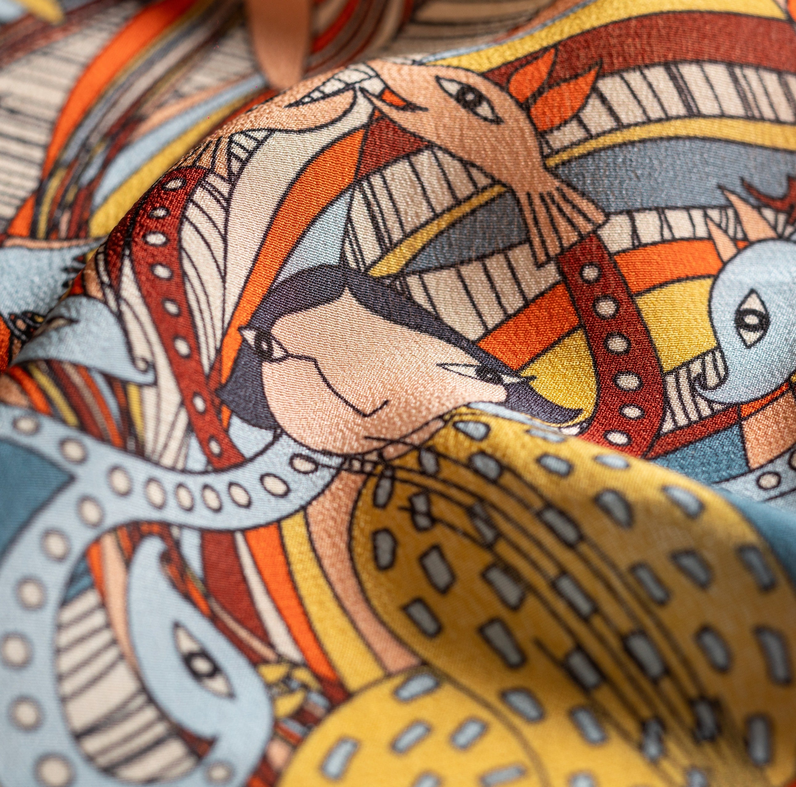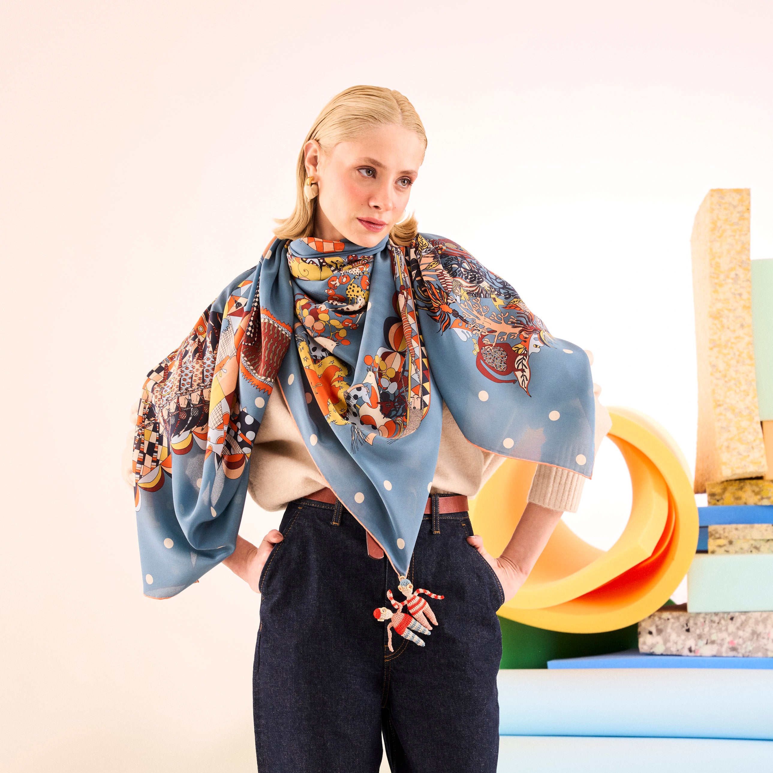 - Fularlarımız kenarlarında desende anlatılan hikayeyi tamamlayan 3 boyutlu el yapımı figürlerle gelmektedir. Geleneksel Türk Oya sanatının modern bir yorumu olan bu figürler Güneydoğu Anadolu’da GAP Bölge İdaresi ve UNDP’nin ortaklaşa yürüttükleri, ve bölge kadınının ekonomik kalkınmasını amaçlayan bir proje kapsamında elde üretilmektedirler.