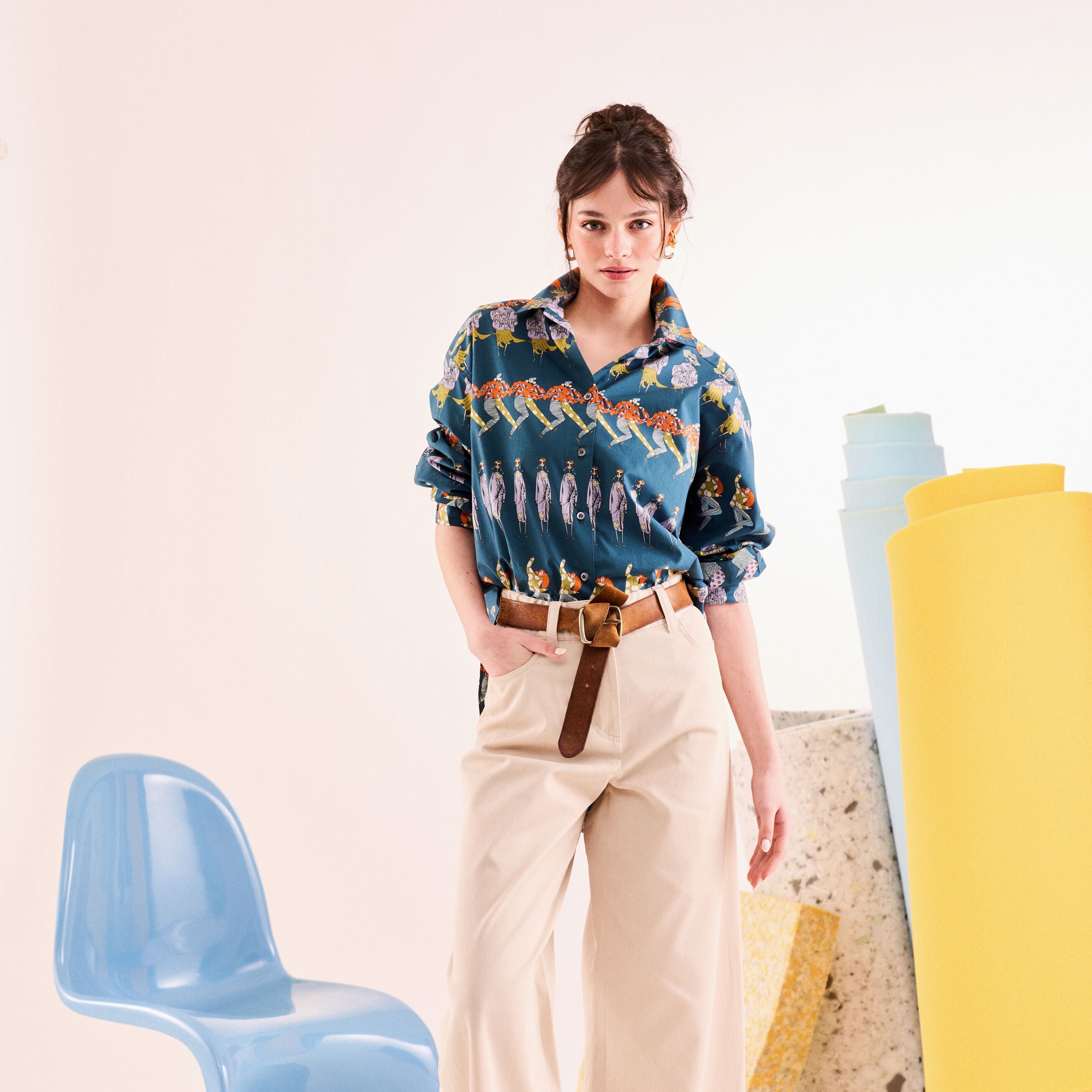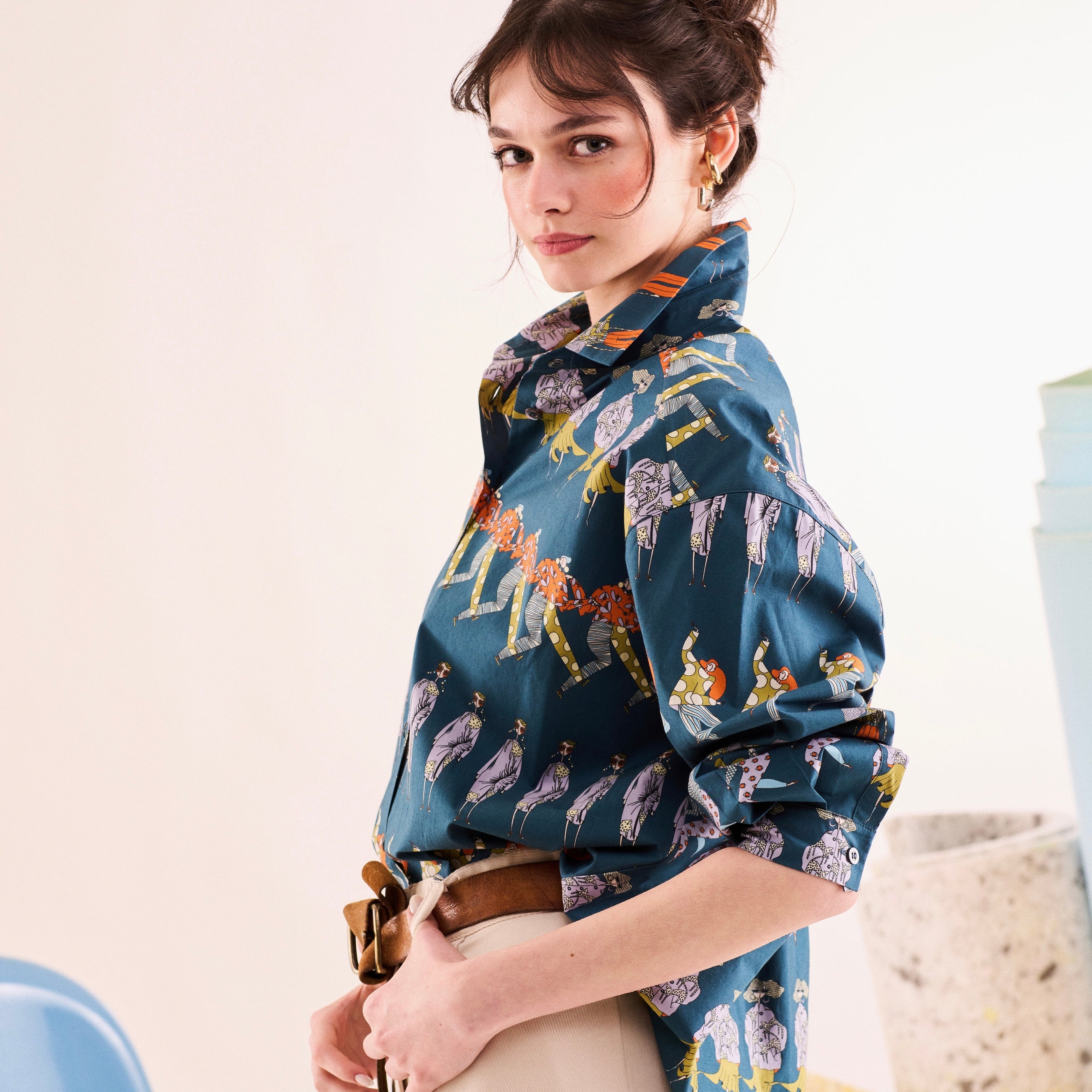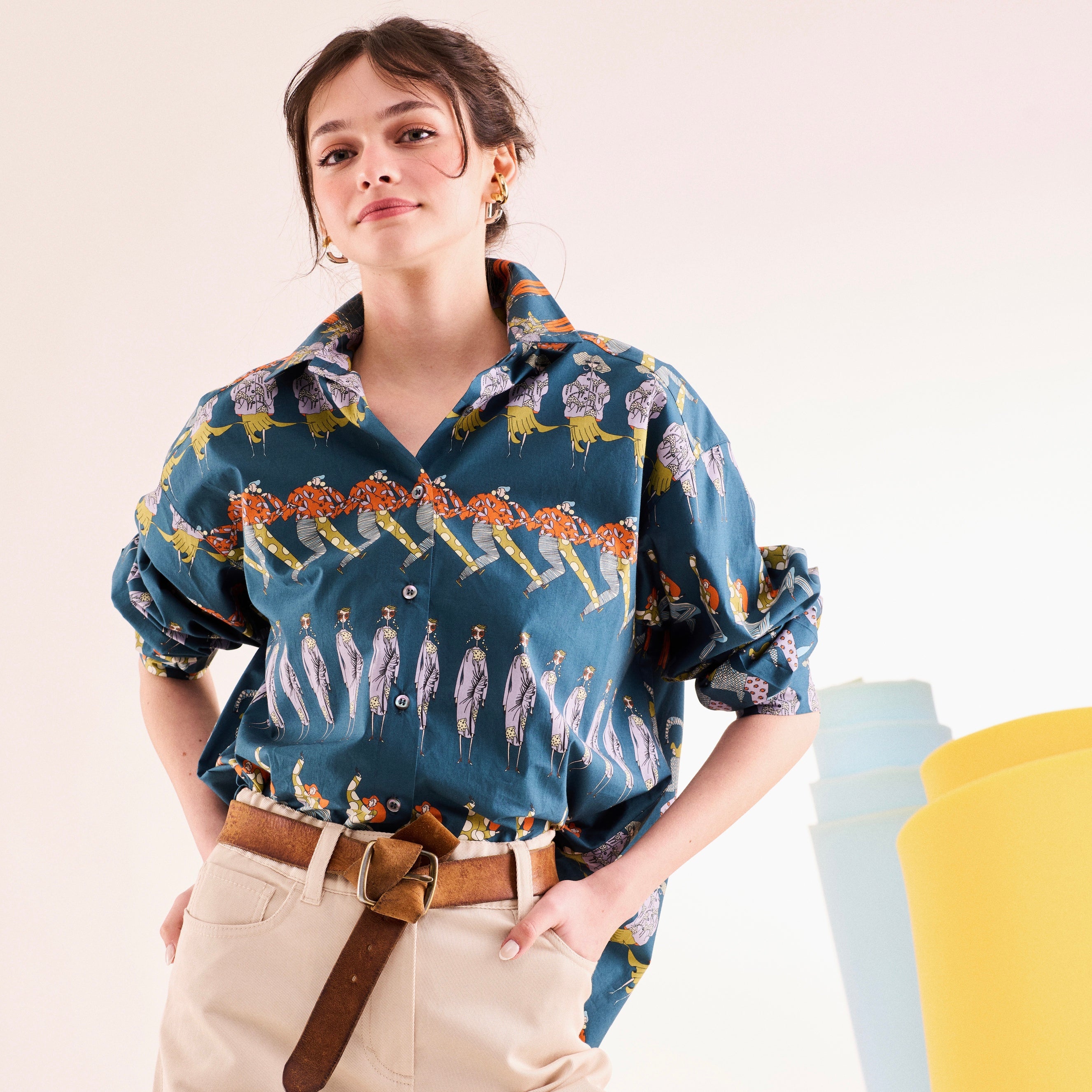 - %100 koton kumaştan, arka ortadan pile detaylı, geniş “boyfriend’s” volümlü, klasik yakalı gömlek.
