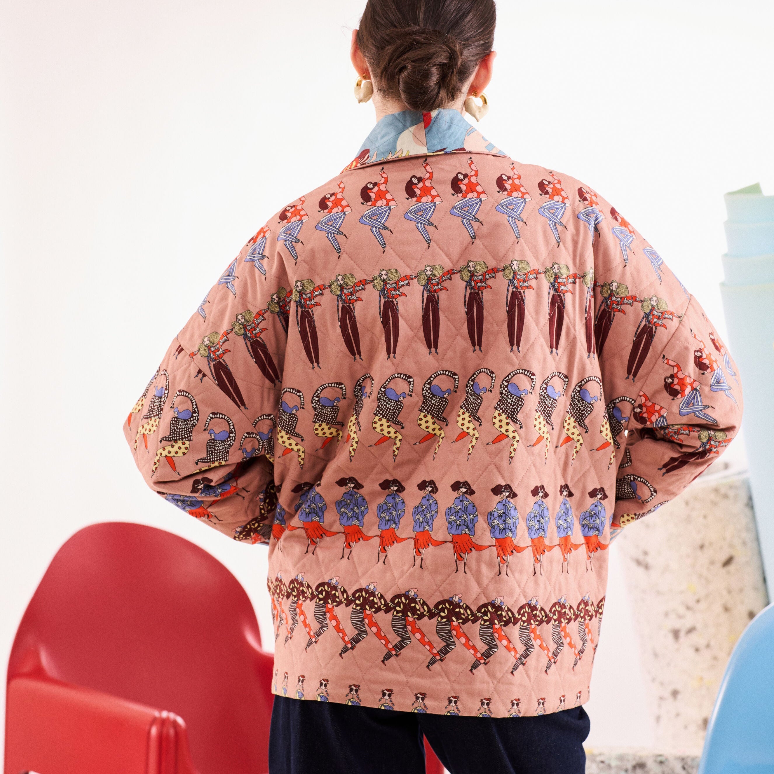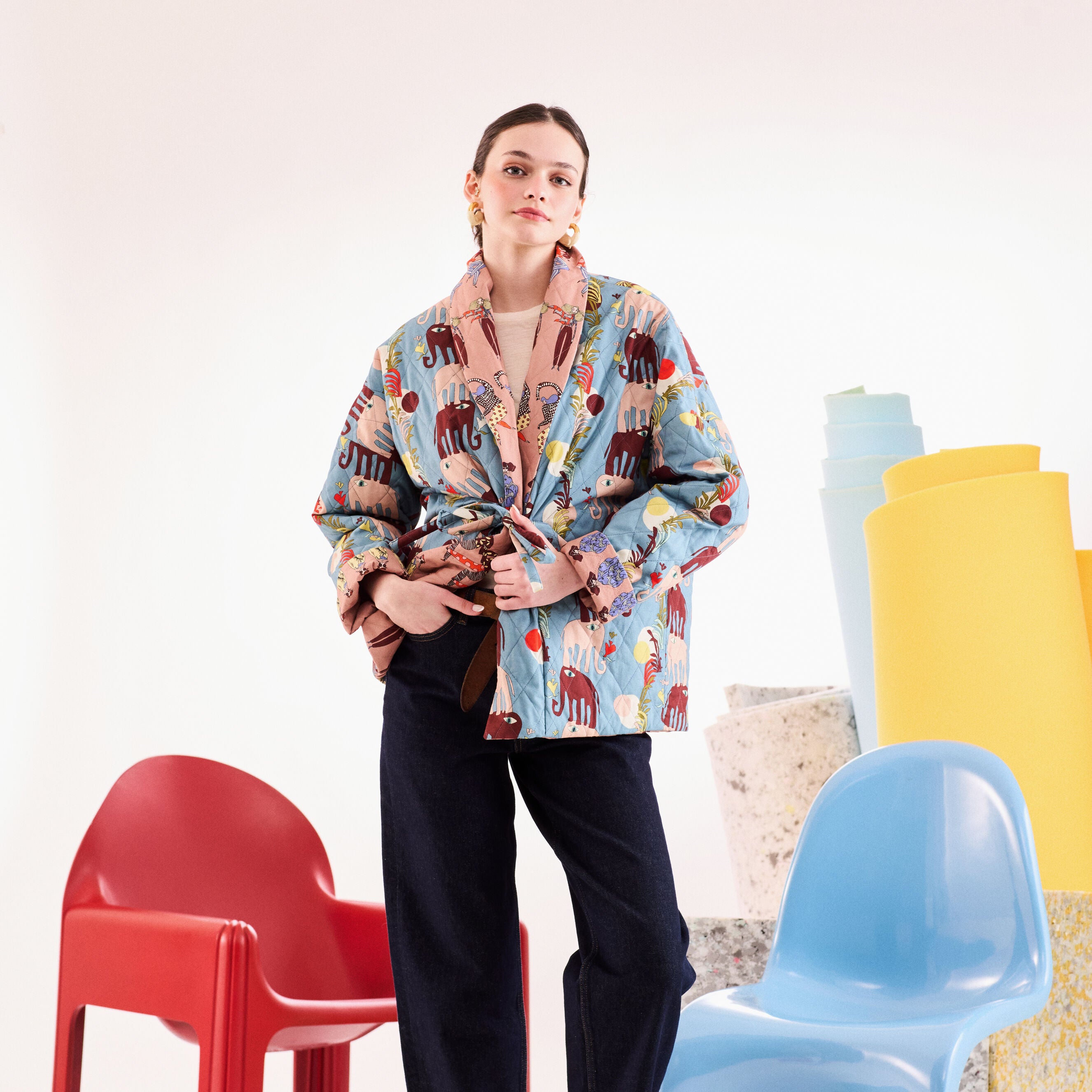 - %100 koton kumaştan, çift taraflı, belden bağlamalı, kapitone ceket.