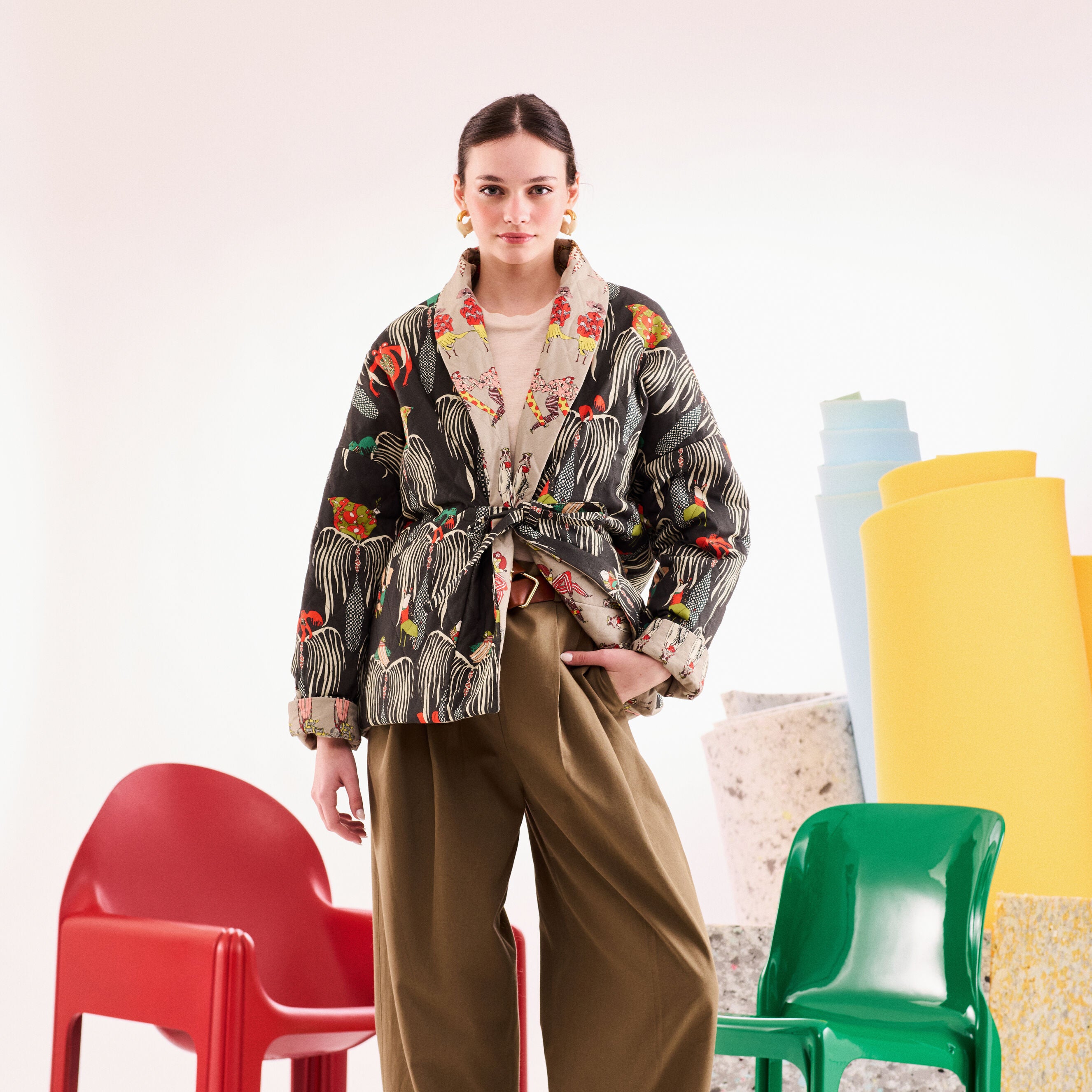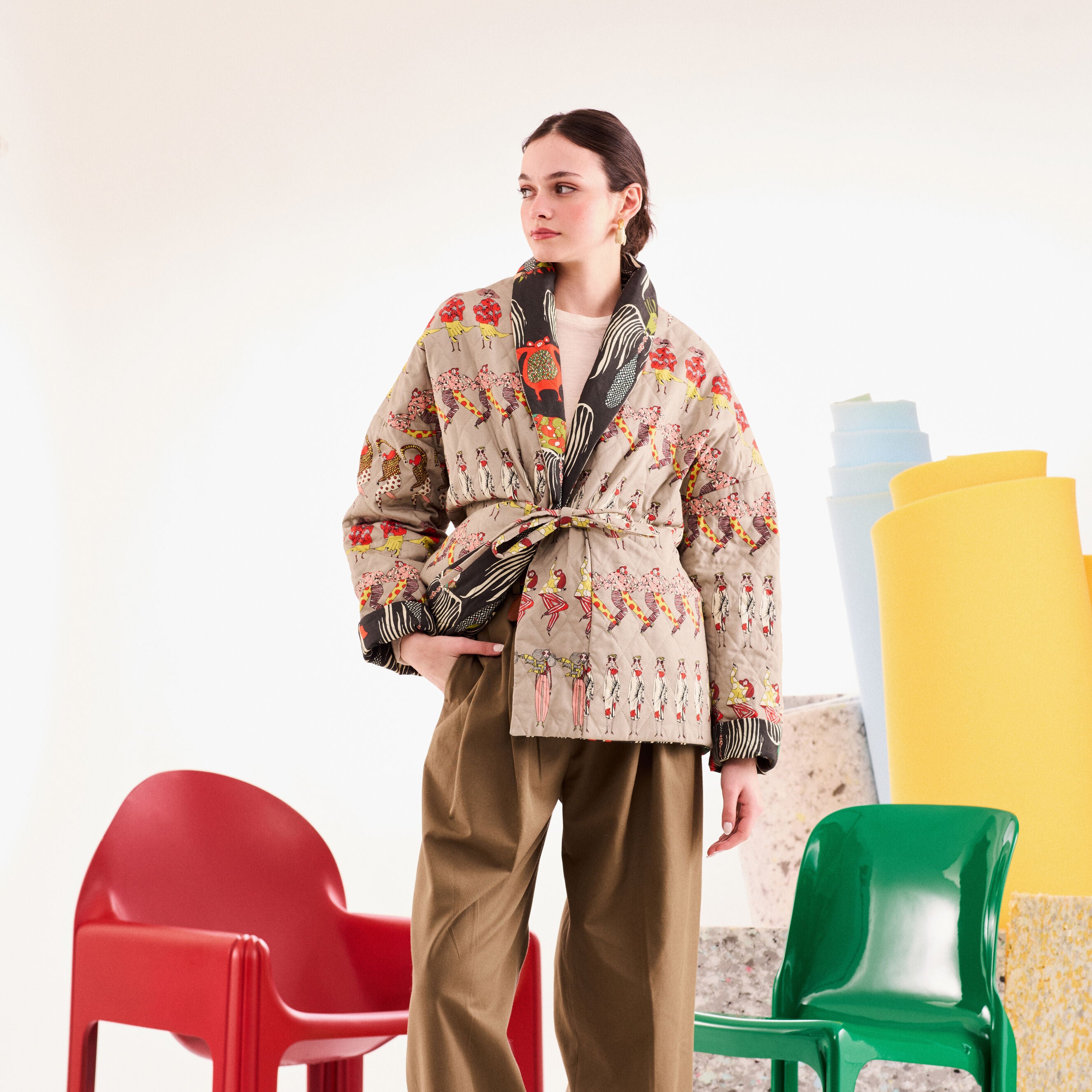 - %100 koton kumaştan, çift taraflı, belden bağlamalı, kapitone ceket.
