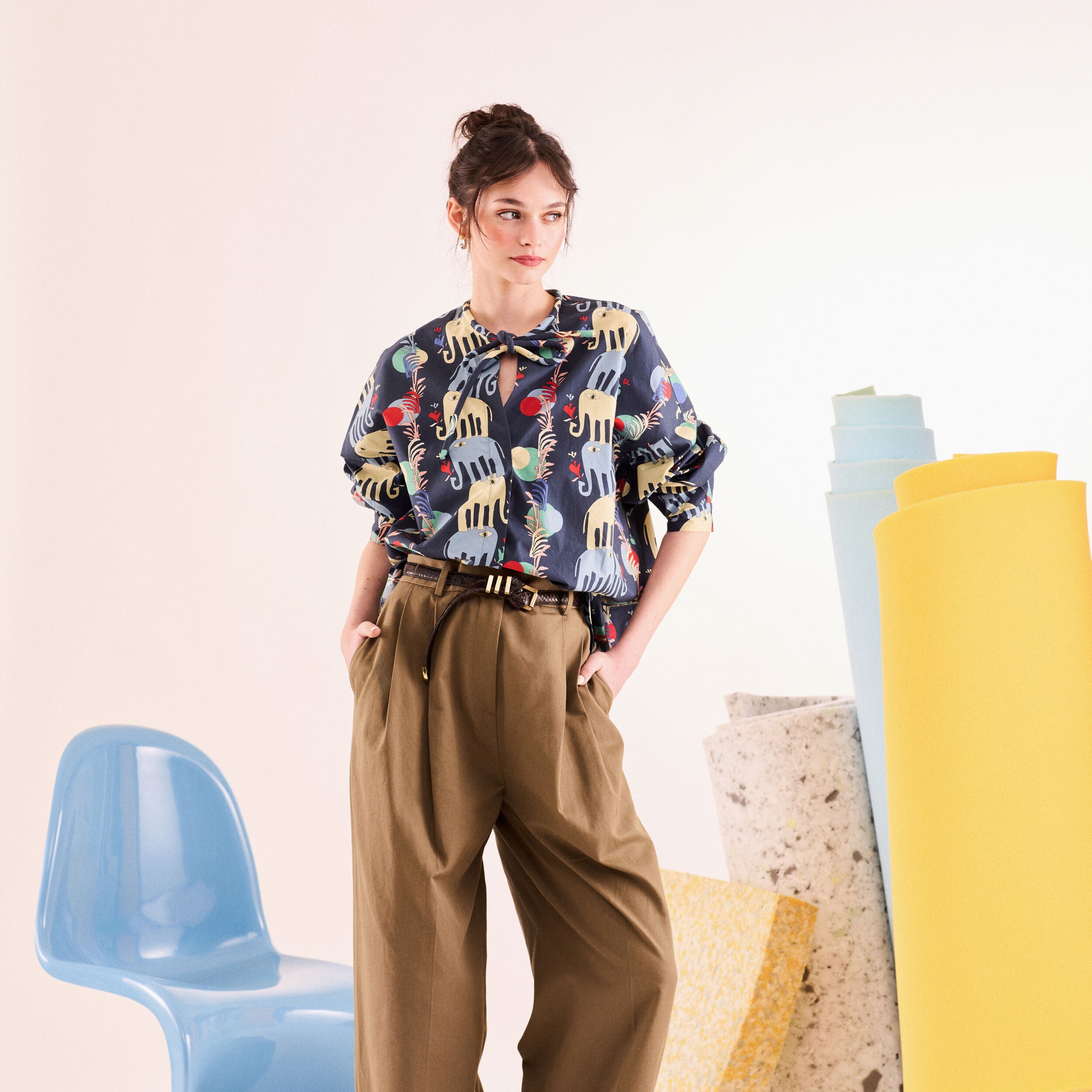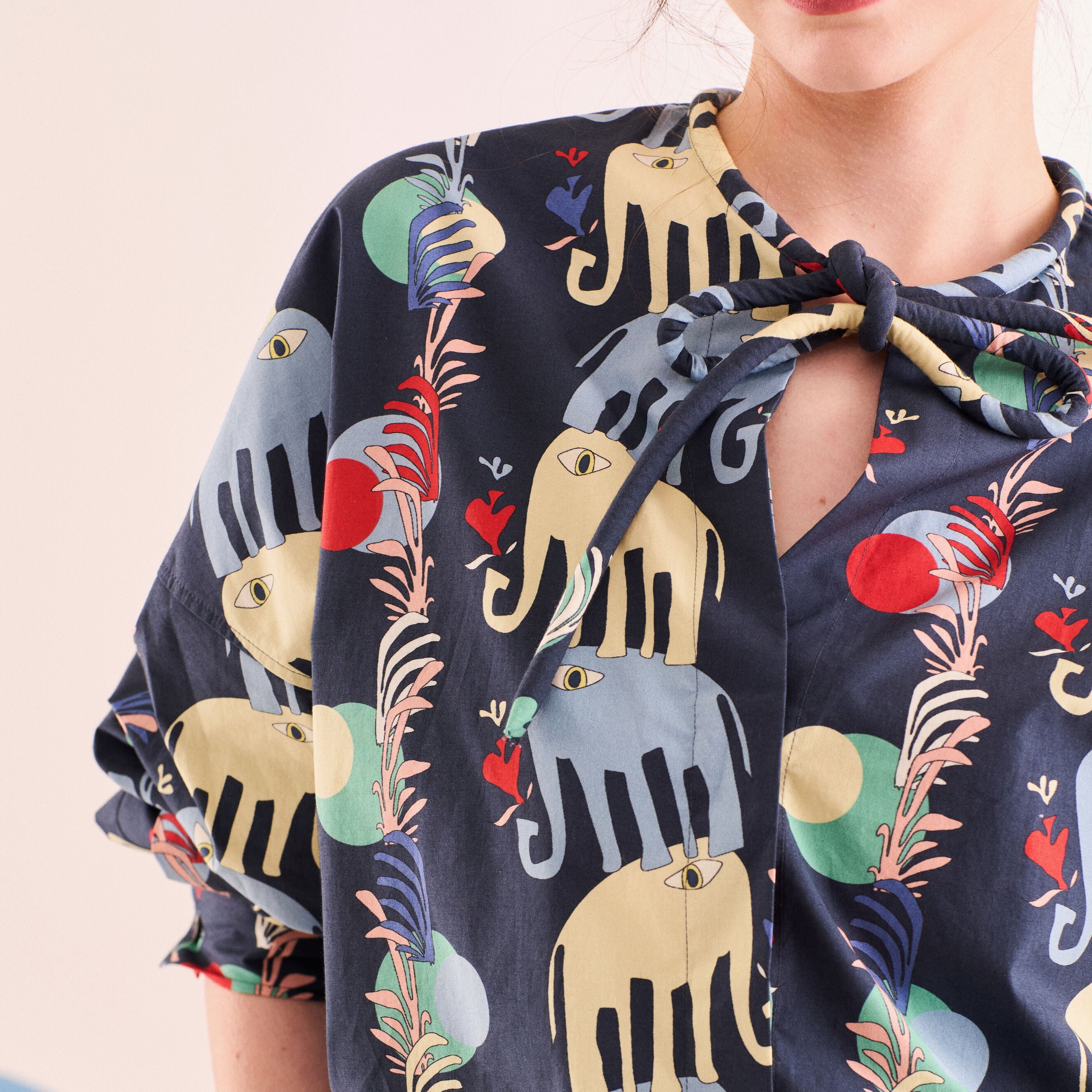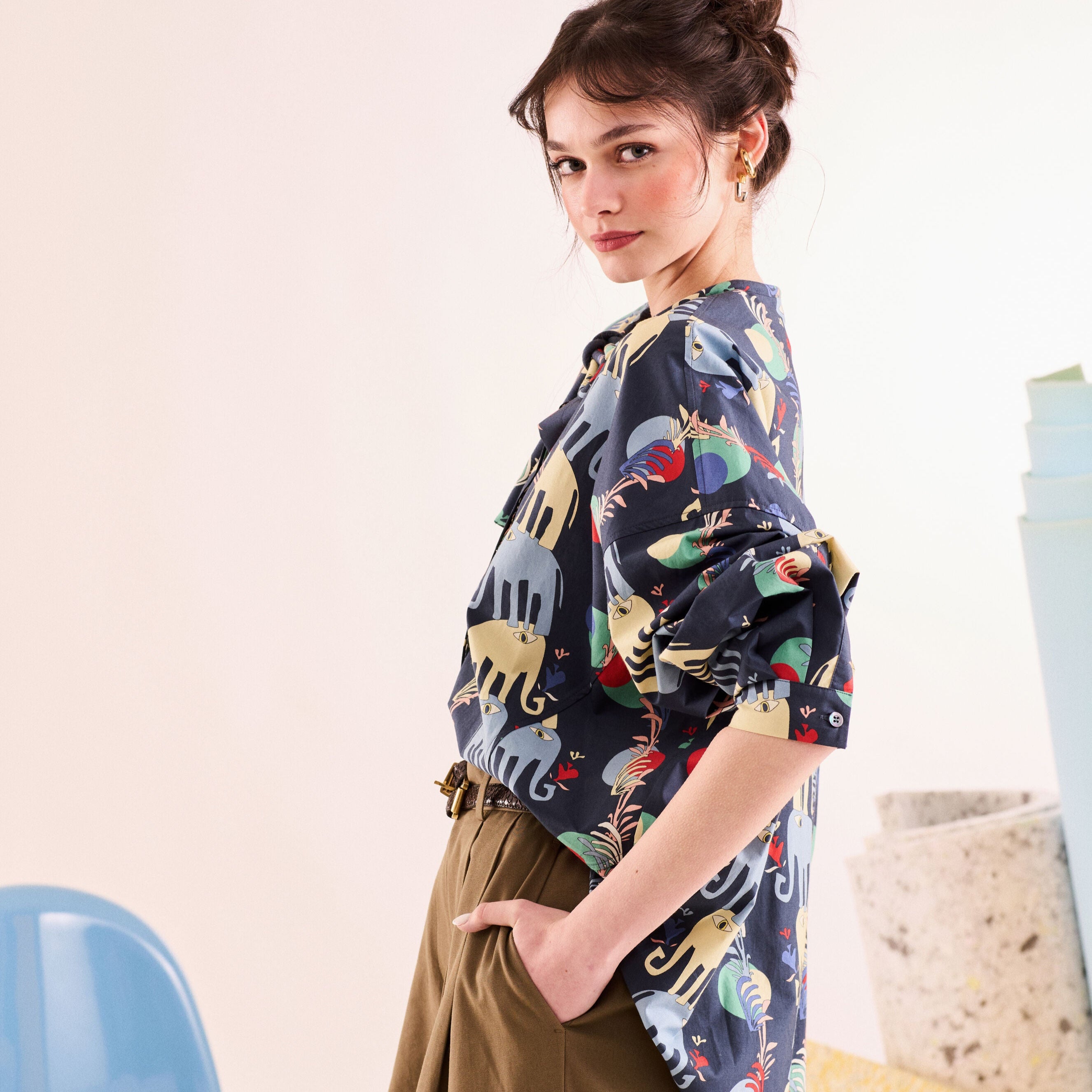 - %100 koton kumaştan, kendinden bağcıklı boxy gömlek.