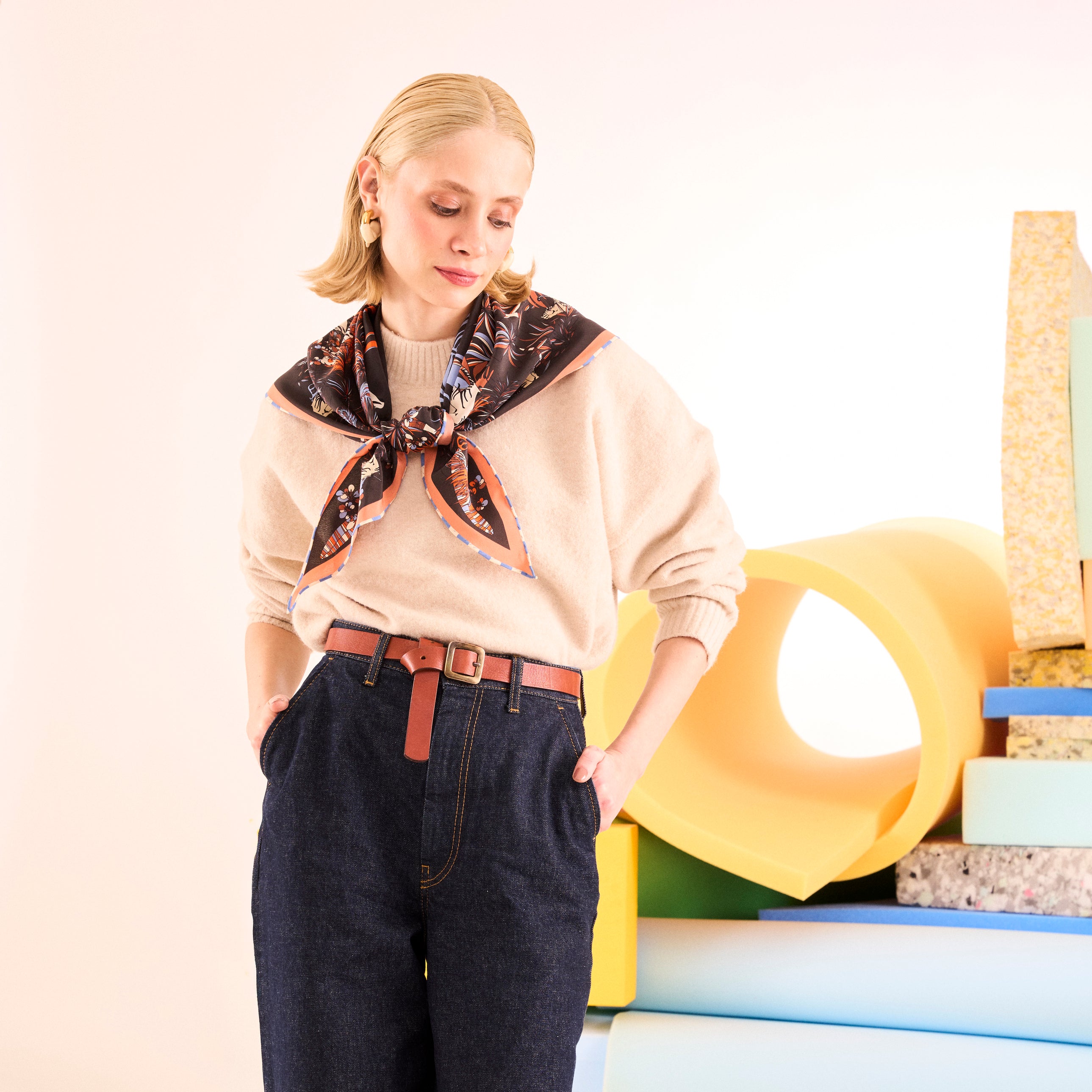 - Ölçü: 135 cm x 68 cm üçgen fular.
