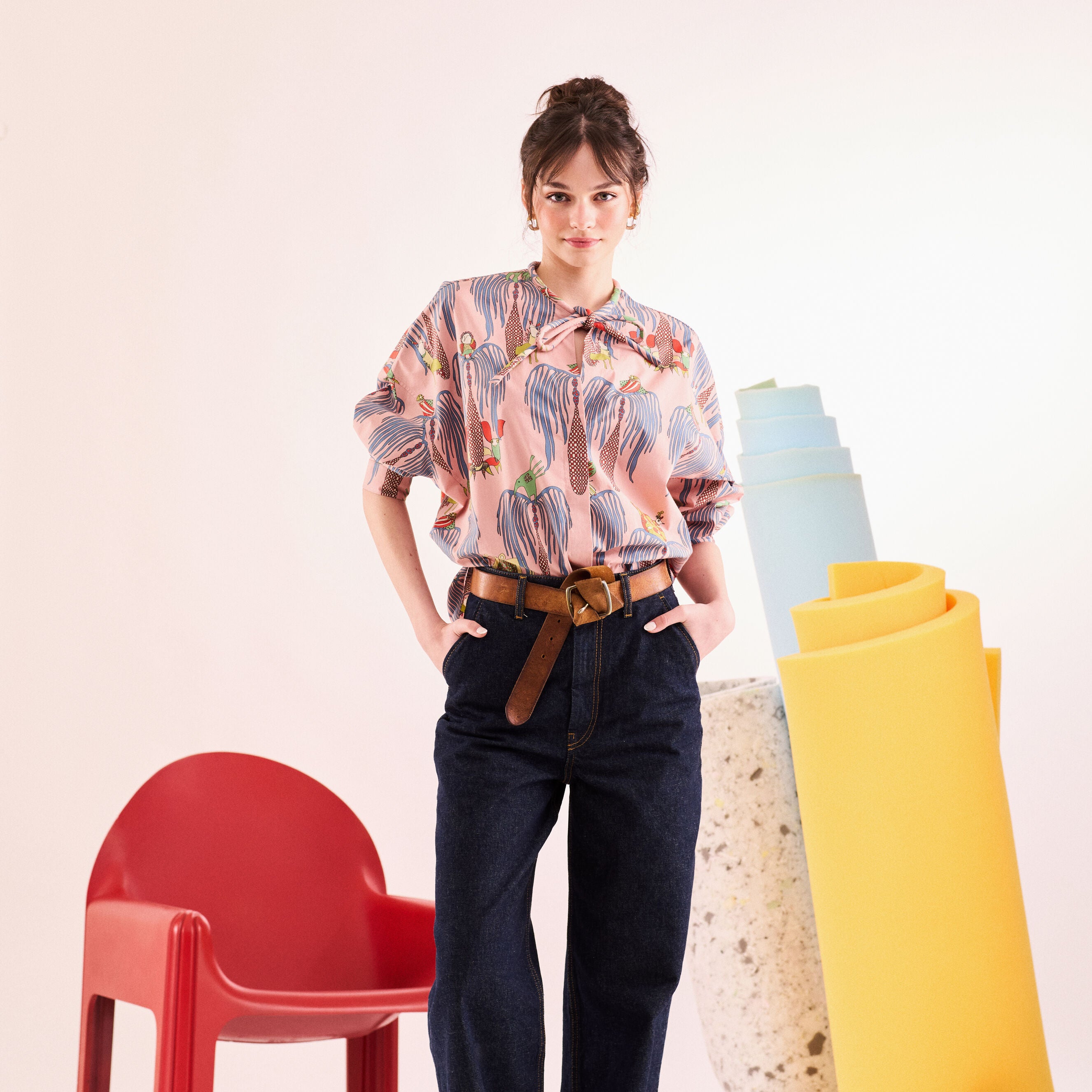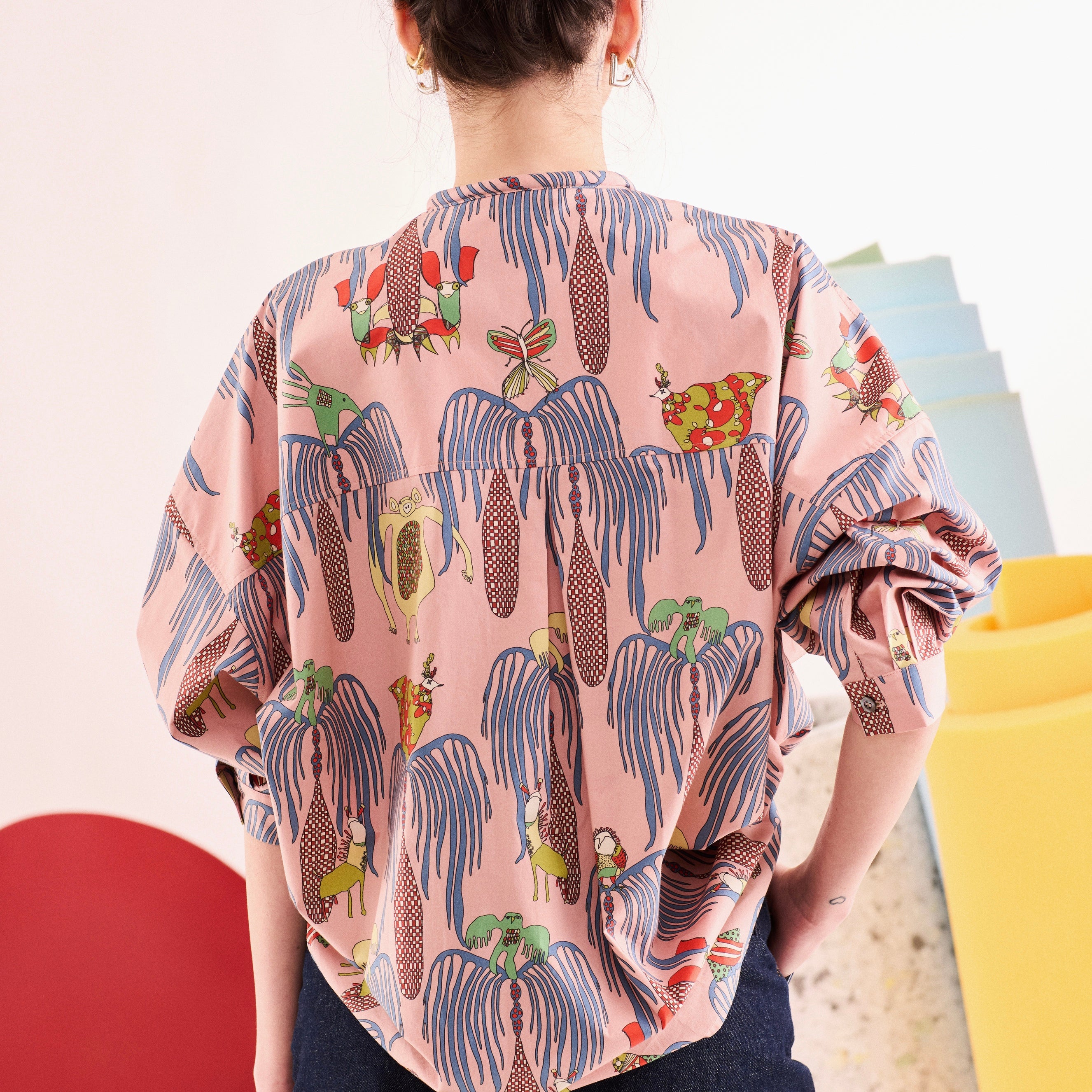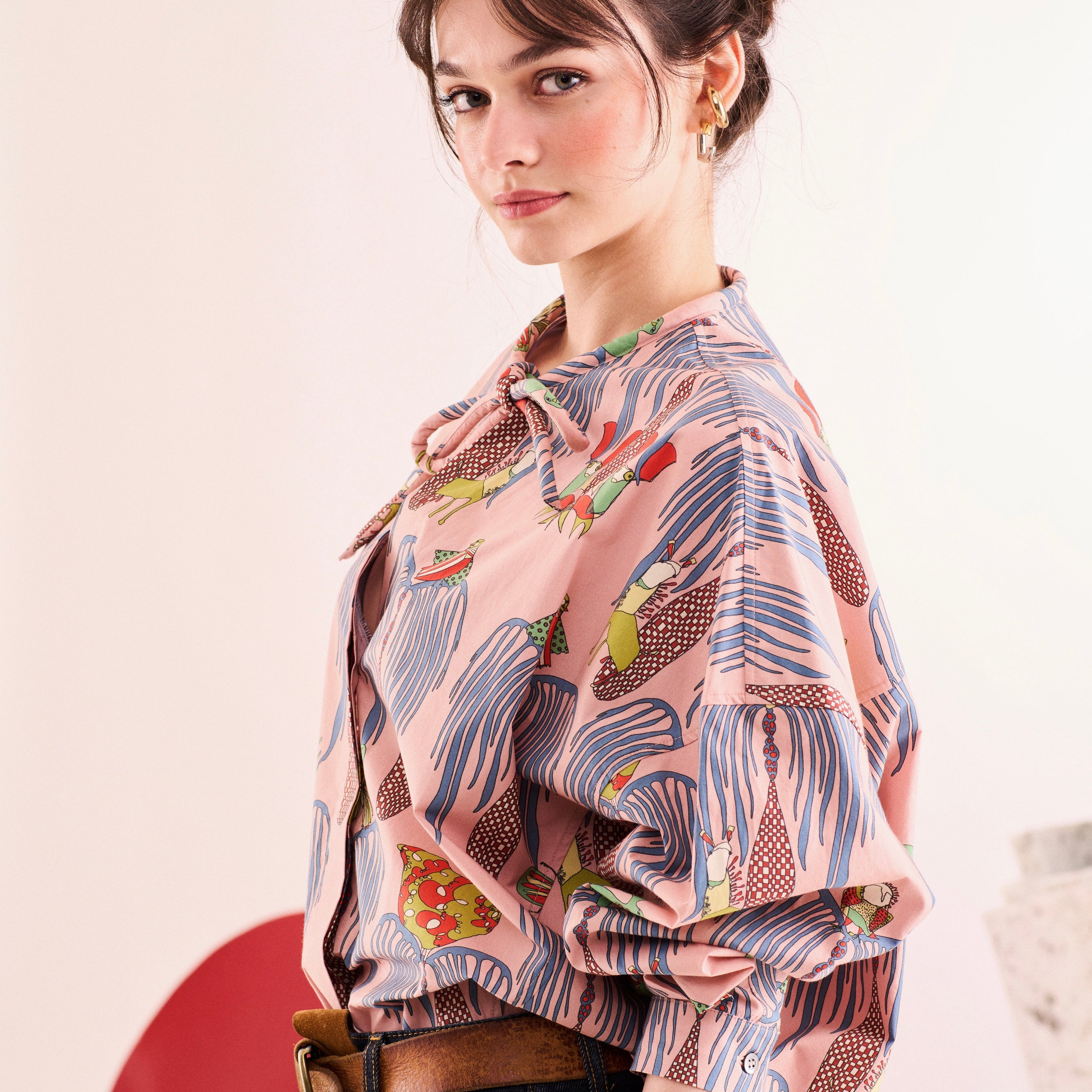 - %100 koton kumaştan, kendinden bağcıklı boxy gömlek.